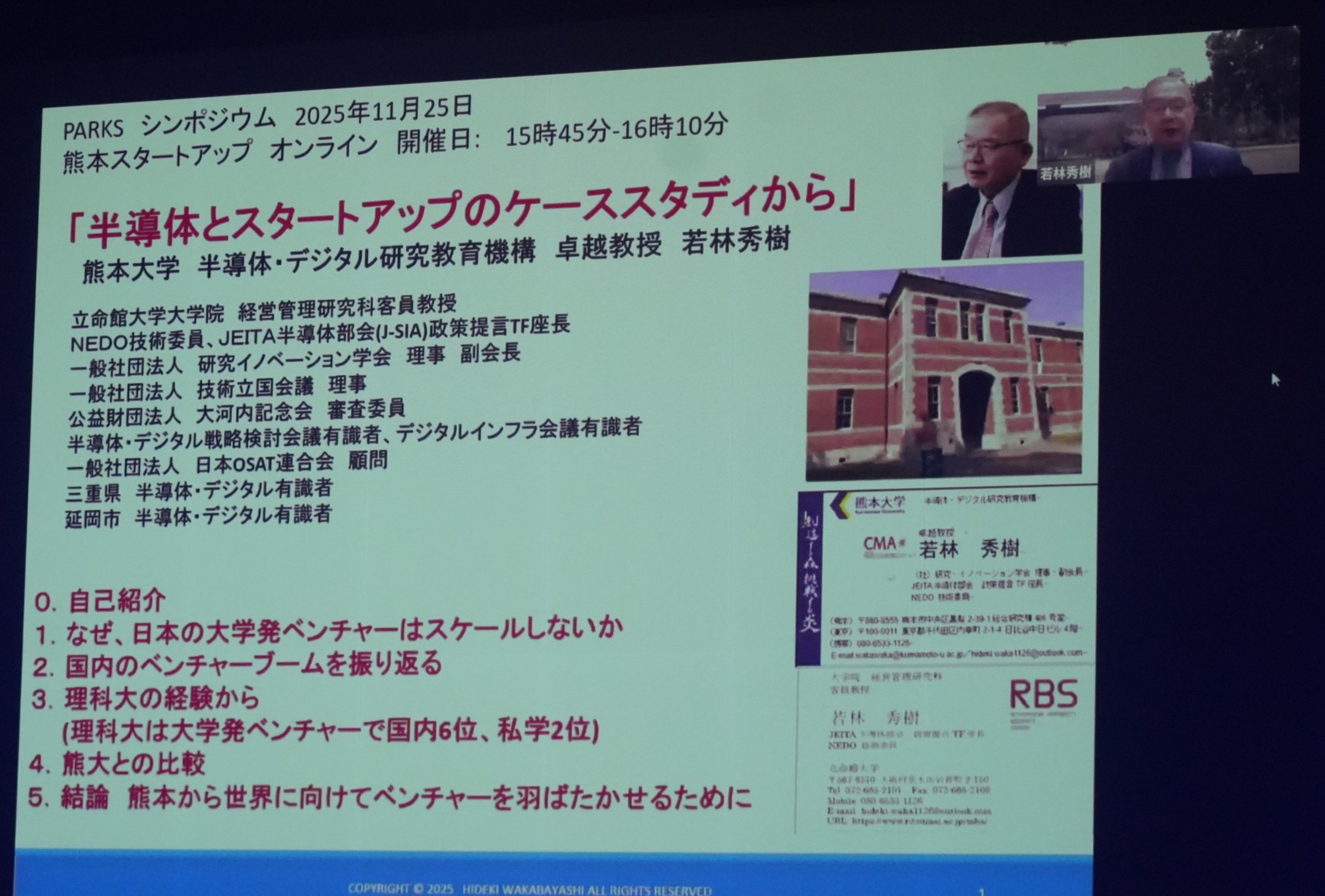 登壇者-若林 秀樹(熊本大学 半導体・デジタル研究教育機構 卓越教授)