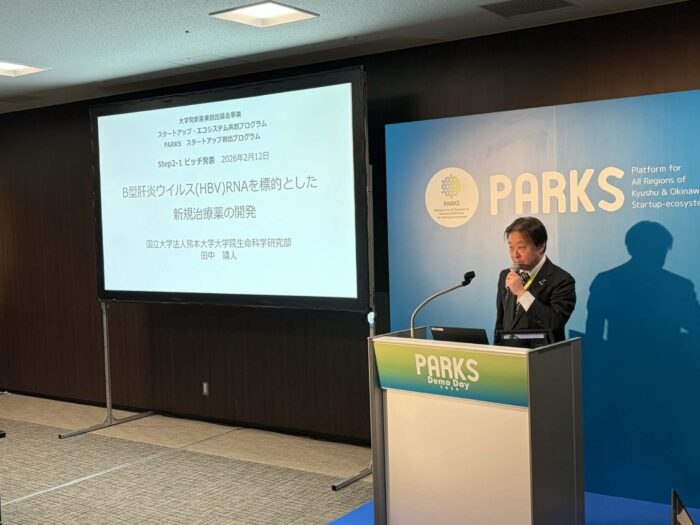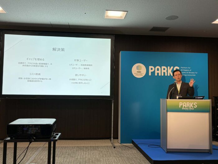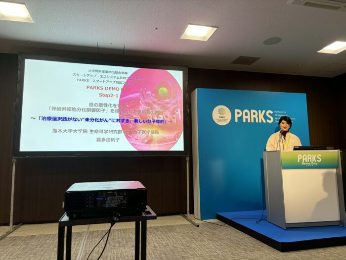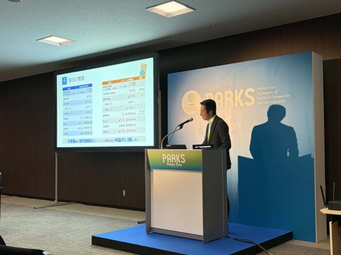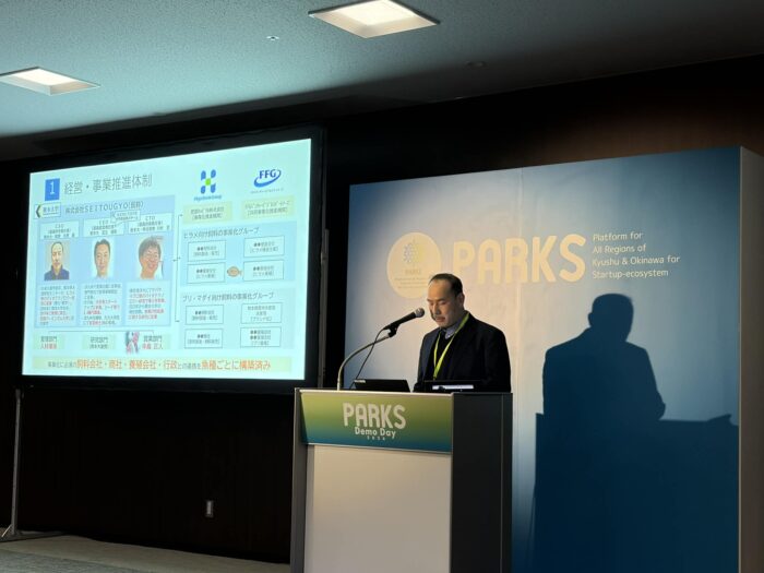 「PARKS(パークス)」は、九州・沖縄の大学発スタートアップ・エコシステムの形成を目指すプラットフォームであり、本イベントはPARKSが運営するギャップファンドに採択された技術シーズの事業化を目指すチームが、その成果を発表する場として開催されたものです。